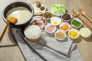 过桥米线是云南省滇南地区的一种特有的小吃,属滇菜系,该菜品起源于蒙自地区,是由汤料、佐料、生的猪里脊肉片、鸡脯肉片、乌鱼片及五成熟的猪腰片、肚头片、水发鱿鱼片制作而成。 辅料有来过的豌豆尖、韭菜,以及芫荽、葱丝、草芽丝、姜丝、玉兰片、氽过的豆腐皮;四是主食,即用水略烫过的米线。鹅油封面,汤汁滚烫,但不冒热气。
